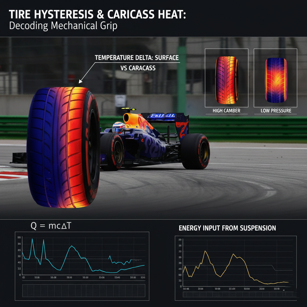 The temperature delta between tire surface and carcass revealed how a rival car was generating mechanical grip, managing energy input, and loading the tire through corners.